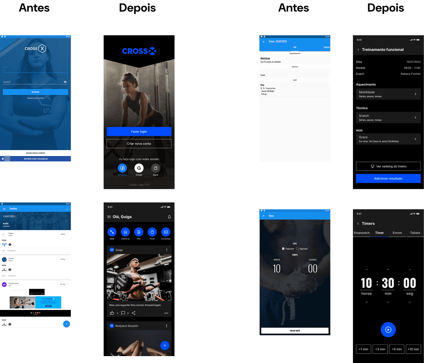 Redesenhar toda a experiência do app, melhorando todos os fluxos quebrados, trazendo novas funcionalidades e um layout e desing novo que tivesse a uma pegada mais lifestyle e agressiva do Cross Training.