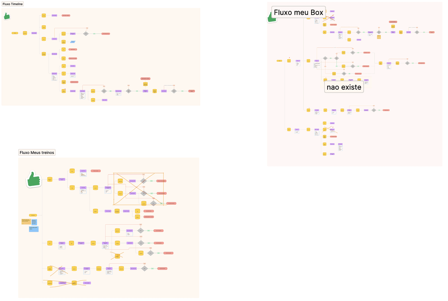 Inicialmente construímos um sitemap do aplicativo inteiro para podermos ter uma noção de layoutes, quantidades de telas e aproveitar e desenhar o fluxo existente para entender onde estavam os pontos críticos da jornada.