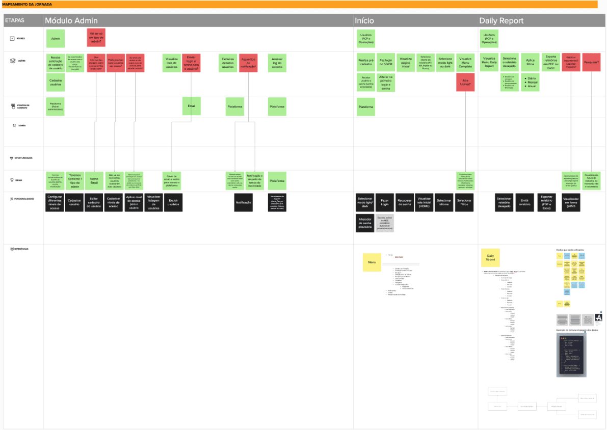Mapeamento dos relatórios manuais e principais dores dos usuários.