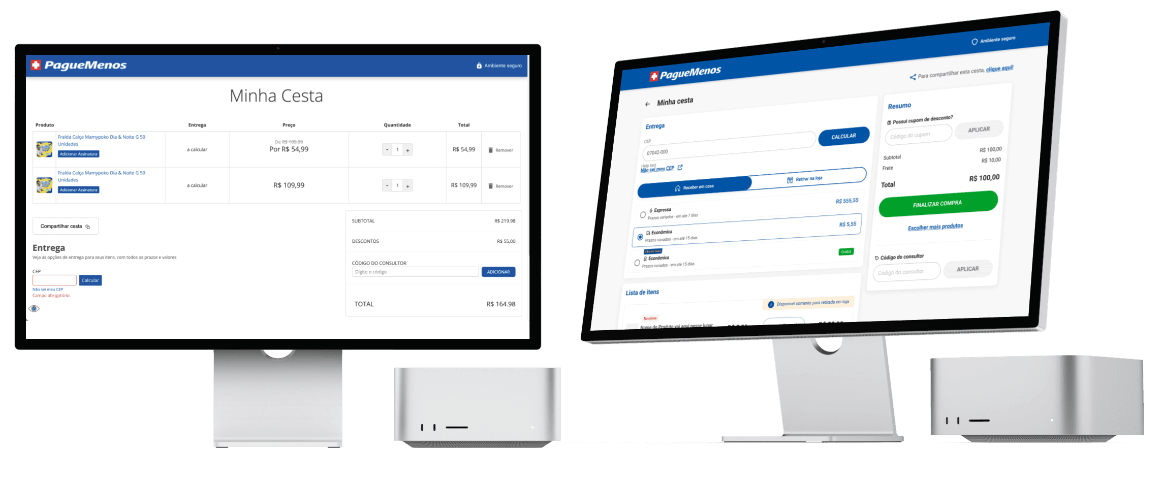 O novo fluxo de checkout trouxe uma jornada mais clara, segura e eficiente, reforçando a proposta de valor digital da Pague Menos e Extrafarma. O lançamento faseado permitiu validar hipóteses, aprender com os usuários e escalar a solução de forma controlada.
