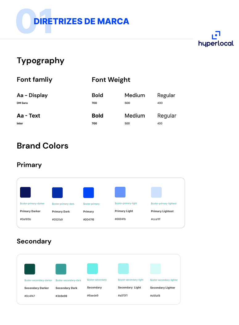 Junto com o time de Branding, desenvolvemos os guidelines de todas as marcas. Paletas de cores com ênfase em acessibilidade, famílias tipográficas, características da identidade de acordo com o público, direcionamento de imagens e ilustrações e tom de voz.