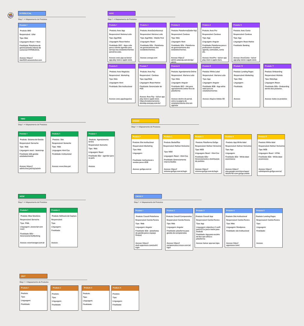Passando de tela em tela, identificando quais seriam os componentes que entrariam no design system, filtrando e classificando se seriam Core Componentes (Padrão em todas as marcas) ou Team Componentes (Específico de cada marca).