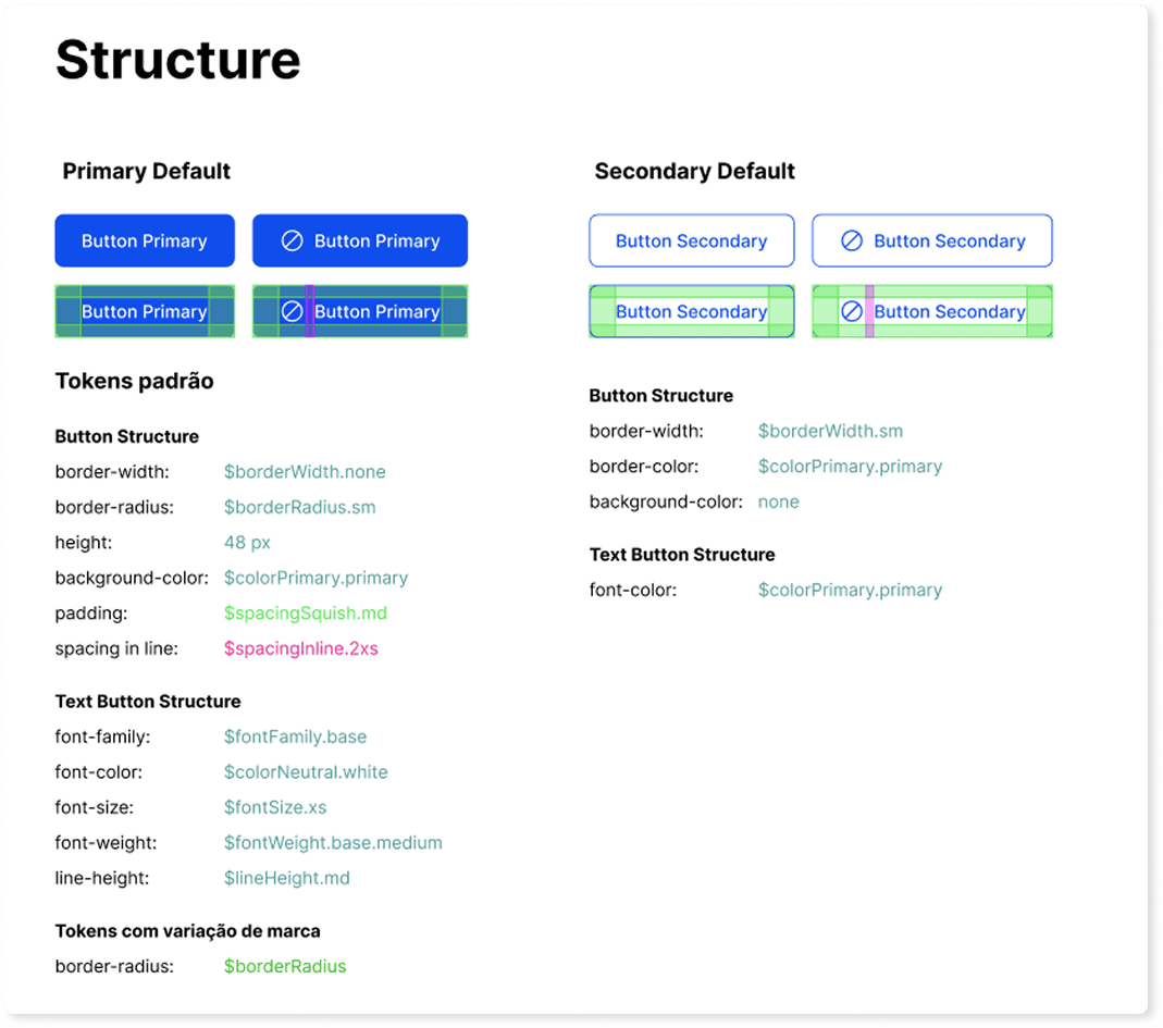 Definido qual seriam os Core componentes, foi iniciado o desenvolvimento do design e handoff para entregar para o time de desenvolvedores criarem as bibliotecas em código.